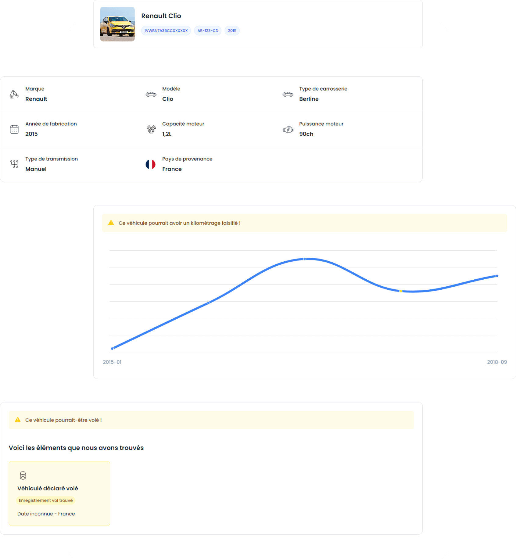 Få en detaljert rapport med historikk og reell kilometerstand for et kjøretøy, slik at du unngår svindel og skjulte feil.